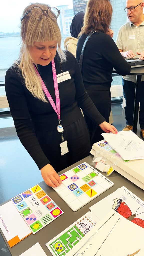 Natasia Fenger Dahlman från Synscenter Refsnæs i Danmark var en av presentatörerna. Med hjälp av magnetklossar har de skapat ett inkluderande undervisningsmaterial för både seende elever och elever med blindhet.